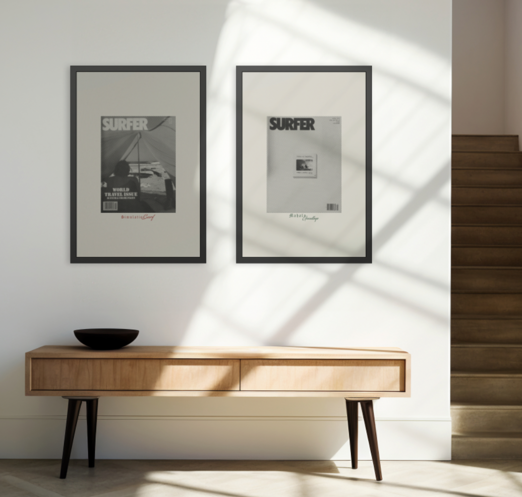 Mind surf your walls with a simulation surf interpretation of a classic Surfer Mag Scorpion Bay cover shot. Merging classic surf style and flow with modern art techniques.